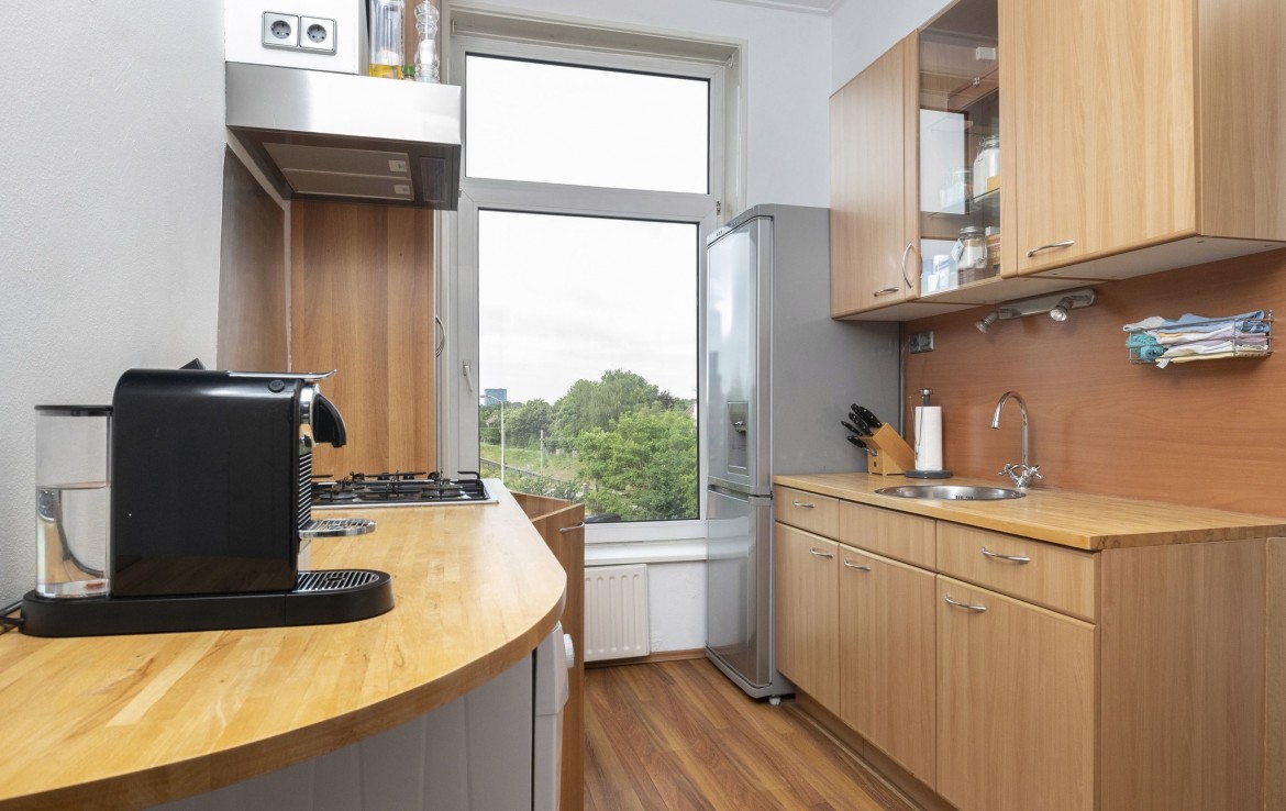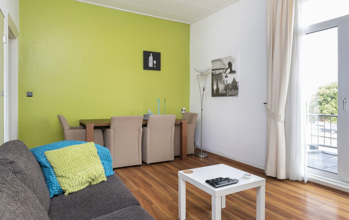 Het appartement bevindt zich op de bovenste verdieping van een karakteristiek pand uit 1910 en beschikt onder andere over twee slaapkamers en een woonoppervlakte van circa 62m2.